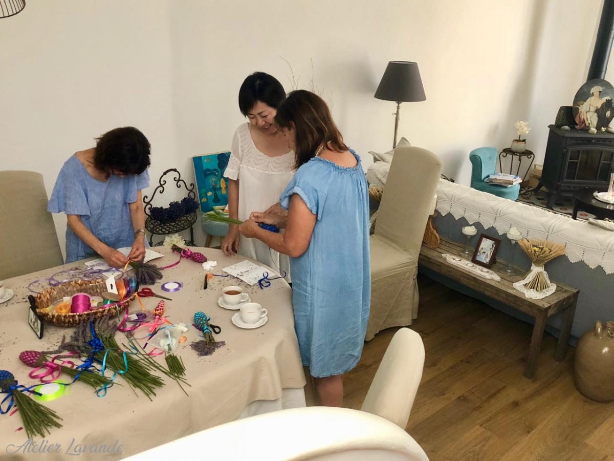 Le 14 juillet j'étais à l'Isle-sur-Sorgue en compagnie de Hiroko et Yoko venus spécialement du Japon pour apprendre à confectionner des fuseaux de Lavande, car friandes de culture provençale et avec un beau projet lavande en tête pour le Japon...