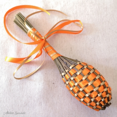 Fuseau de lavande de Provence Bicolore de fabrication artisanale avec ses rubans satin couleur Rose et Blanc.