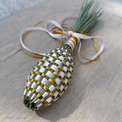 Fuseau de lavande de Provence Bicolore de fabrication artisanale avec ses rubans satin couleur Blanc et Or.