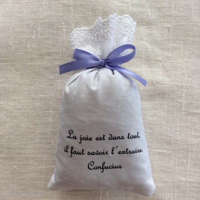 Sachet de 30 G de fleurs de lavandin, coton blanc percale doux, impression numérique, galon en broderie anglaise ou dentelle
