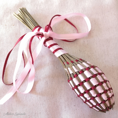 Fuseau de lavande de Provence Bicolore de fabrication artisanale avec ses rubans satin couleur Blanc et Bordeaux.