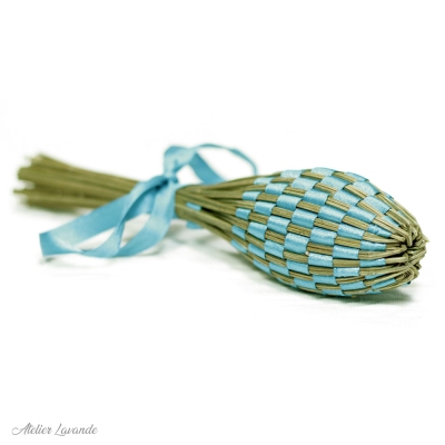 Fuseau de lavande de Provence de fabrication artisanale avec son ruban satin couleur bleu Turquoise.